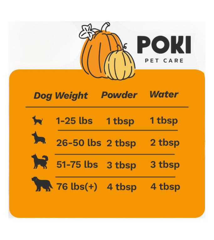 Use our dosage guide to ensure your dog gets the perfect amount of pumpkin powder based on their size.